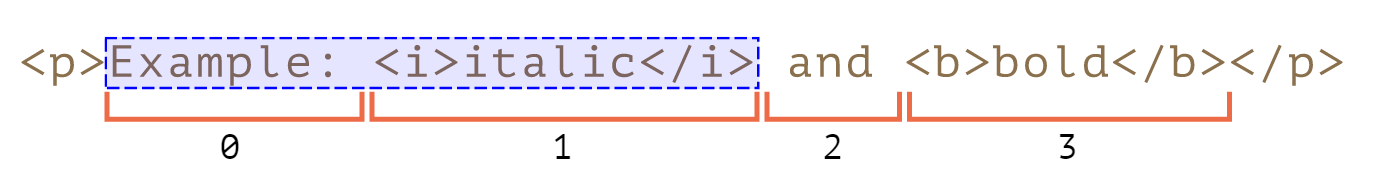 <p id="p">Example: <i>italic</i> and <b>bold</b>