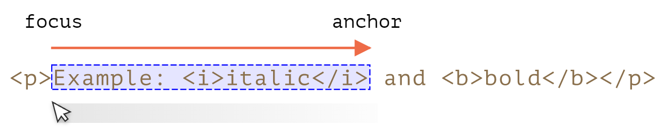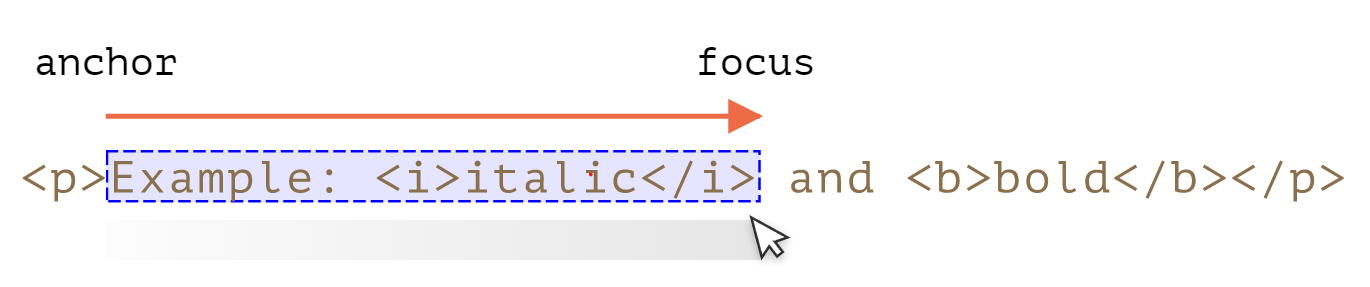 如果用户使用鼠标从 “Example” 开始选择到 “italic”